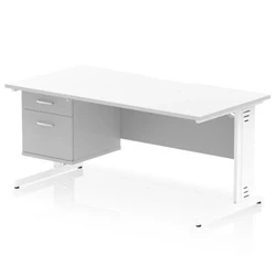 Impulse 1600 x 800mm Scalloped Edge Office Desk White Top Cable Managed Leg Workstation 1 2 Drawer Fixed Pedestal