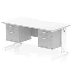 Impulse 1600 x 800mm Scalloped Edge Office Desk White Top Cable Managed Leg Workstation 2 Drawer Fixed Pedestal