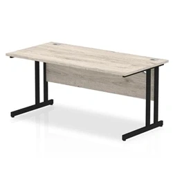 Impulse 1600 x 800mm Straight Desk Grey Oak Top Black Cantilever Leg