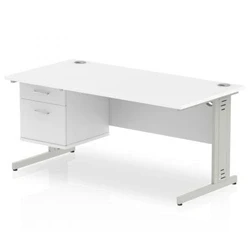 Impulse 1600 x 800mm Straight Office Desk White Top Silver Cable Managed Leg Workstation 1 2 Drawer Fixed Pedestal