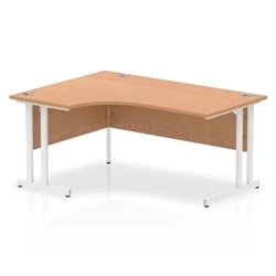 Impulse 1600mm Left Crescent Desk Oak Top White Cantilever Leg