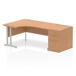 Impulse 1600mm Left Crescent Office Desk Oak Top White Cantilever Leg Workstation 800 Deep High Pedestal