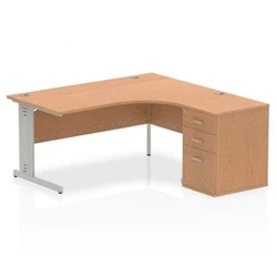 Impulse 1600mm Right Crescent Office Desk Oak Top Silver Cable Managed Leg Workstation 600 Deep High Pedestal