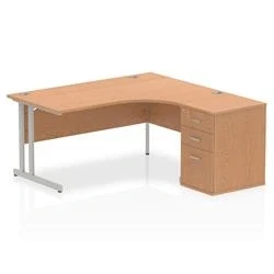 Impulse 1600mm Right Crescent Office Desk Oak Top White Cantilever Leg Workstation 600 Deep High Pedestal