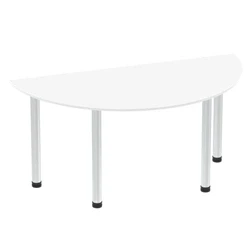Impulse 1600mm Semi Circle Table White Top Brushed Aluminium Post Leg