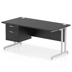 Impulse 1600x800 Desk Black/Silver Cantilever Leg 1x2 Drawer Fixed Ped