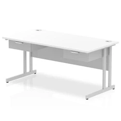 Impulse 1600x800 Desk Cantilever Leg White/Silver 2x1 Drawer Fixed Ped