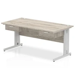 Impulse 1600x800 Desk Grey Oak/Silver Cable Managed 1 Drawer Fixed Ped