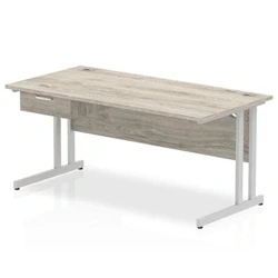 Impulse 1600x800 Desk Grey Oak/Silver Cantilever 1 Drawer Fixed Ped