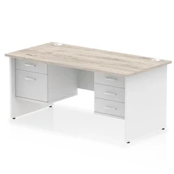 Impulse 1600x800 Desk Grey Oak/White Panel End 2 & 3 Drawer Fixed Ped