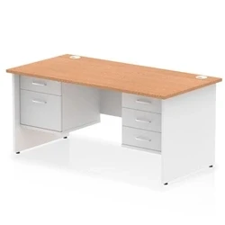 Impulse 1600x800 Desk Oak/White Panel End 1x2 and 1x3 Drawer Fixed Ped