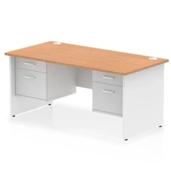Impulse 1600x800 Desk Oak/White Panel End with 2x2 Drawer Fixed Ped
