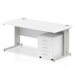 Impulse 1600x800 Desk White Top Silver Cable Managed Leg + Mobile Ped