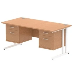 Impulse 1600x800mm Desk Oak White Cantilever 2x2 Drawer Fixed Pedestal