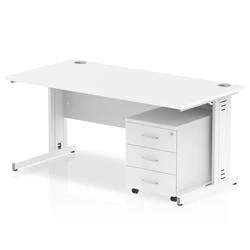 Impulse 1600x800mm Desk White Top Cable Managed Leg + Mobile Ped