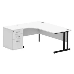 Impulse 1800 LH Crescent Desk White Black Cantilever 600 High Ped