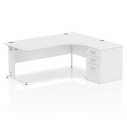 Impulse 1800 Right Crescent Desk White Cable Managed + High Ped