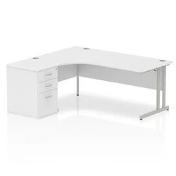 Impulse 1800mm Left Crescent Office Desk White Top Silver Cantilever Leg Workstation 600 Deep High Pedestal
