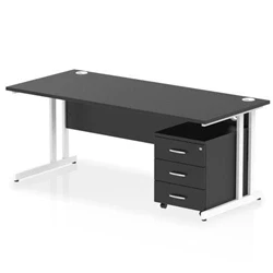 Impulse 1800x800 Desk Black/White Cantilever Leg 3 Drawer Mobile Ped