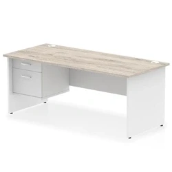 Impulse 1800x800 Desk Grey Oak/White Panel End 1x2 Drawer Fixed Ped