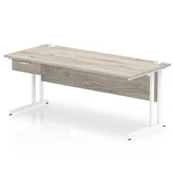 Impulse 1800x800 Desk Grey Oak/White Cantilever Leg 1 Drawer Fixed Ped