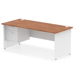 Impulse 1800x800 Desk Walnut/White Panel End Leg 1x2 Drawer Fixed Ped
