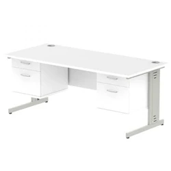 Impulse 1800x800 Desk White Top Silver Leg + 2 Fixed Peds
