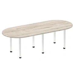 Impulse 2400mm Boardroom Table Grey Oak Top Brushed Aluminium Post Leg