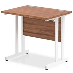 Impulse 800 x 600mm Straight Desk Walnut Top White Cantilever Leg