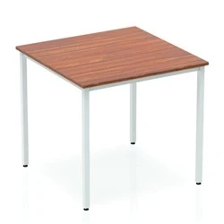 Impulse 800mm Straight Table Walnut Top Silver Box Frame Leg