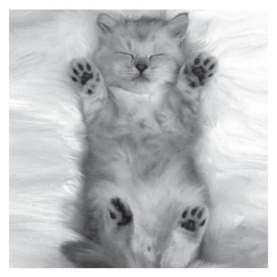 In Black & White, Sleeping Kitten Paws Birthday Card, Happy Card for Her, Him, Open