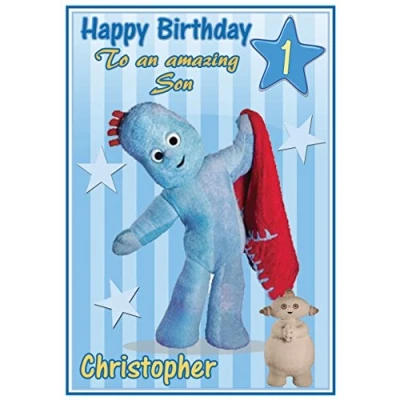 In The Night Garden Birthday Cards Various Designs (Iggle Piggle Striped)