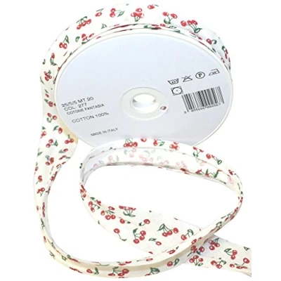 20m x 25/5/5mm 100% Cotton Single Fold Bias Binding Tape High quality Italian manufacturing Washable up to 60 degree Centigrade Ideal for edging a wide variety of fabrics & bunting Folded width is 25mm or 1 inch. Unfolded width is 35mm