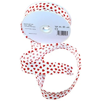 Inastri 25/5/5 mm Cotton Bias Binding 'Love Hearts', Red/White
