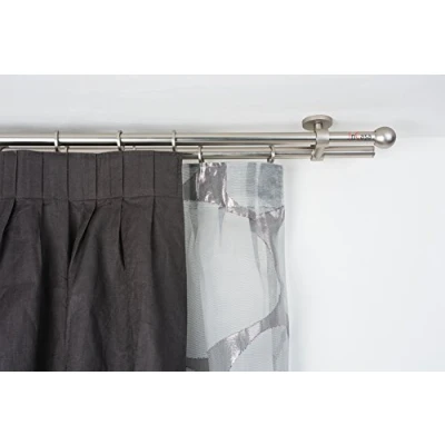 InCasa Curtain Double Pole: 20 mm, Length 140 cm, with Tappo Chic Satin Steel Complete, Stainless, Grey