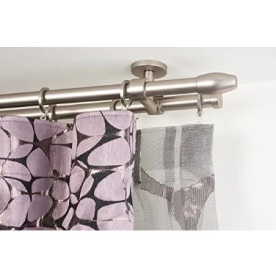 InCasa Curtain Double Pole: 20 mm, Length 260 cm, Satin Steel Complete, Stainless, Grey
