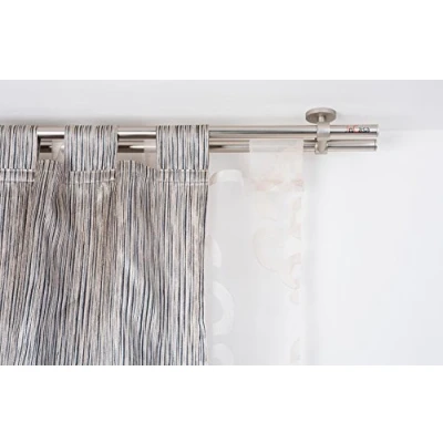 InCasa Curtain Double Pole: 20 mm Without Rings, Length 140 cm, with Tappo Chic Satin Steel Complete, Stainless, Grey