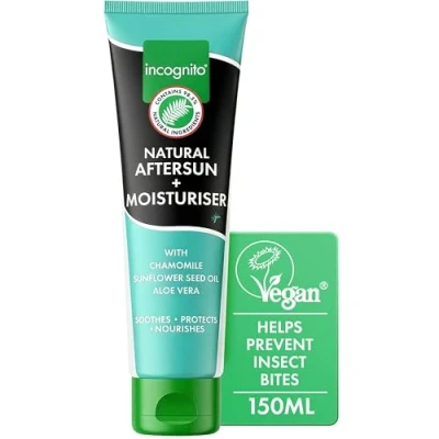 Incognito After Sun Moisturiser 150ml 2 in 1 Aftersun and For Soft Skin & Body Helps prevent insect bites Travel Friendly Organic