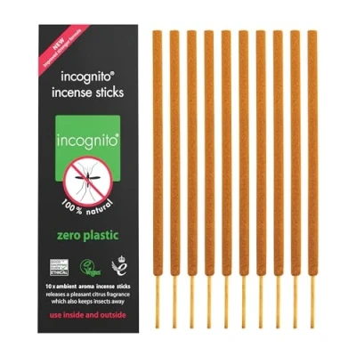 100 NATURAL - Insect repellent incense sticks with a pleasant citrus fragrance to enhance any room, with the added benefit that the light smoke helps to deter insects The citrusy fragrance emitted is also perfect for relaxation and stress-relief SLOW BURNING - Each stick burns and repels mosquitoes for approximately 1 hour 20 minutes Each pack contains 10 sticks PERFECT FOR OUTDOORS OR INDOORS - Our incense sticks can be used indoor and outdoors for garden, camping or BBQ use PROTECTS AGAINST MAJOR DISEASES - incognito Mosquito repellent incense has been proven to protect against mosquitoes that carry dangerous diseases such as zika and malaria Our insect repellent will fight off bites and keep you protected AWARD WINNING AND FAMOUSLY ETHICAL - incognito's Insect Repellent products are multi-award winning and widely distributed and has been chosen as one of the stand-out nature-friendly mosquito repellent products