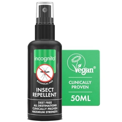 Incognito Insect Repellent Spray, 50ml Natural DEET Free, Shields from Wide Range of Biting Insects. Clinically Proven Protection Ticks & Dengue Carrying Mosquitoes, Organic Mosquito