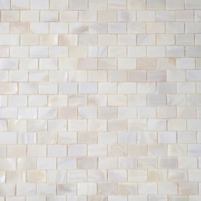 Incudo White Mother of Pearl Brick Mosaic Tile Sample, Mesh Backing