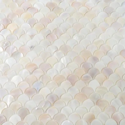 Incudo Natural Mother of Pearl Fan Mosaic Tile 300x300mm, Mesh Backing
