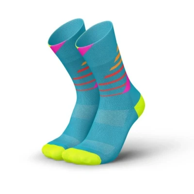 INCYLENCE Running Socks for Men and Women with Light Compression 1 Pair, Ladders Blue Pink, 35 38