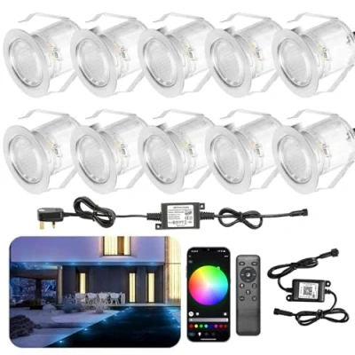INDARUN RGB WiFi Led Decking Lights Waterproof IP67 Ø30MM Plinth for Terrace/Patio/Path/Wall/Garden/Decoration, 10 Packs