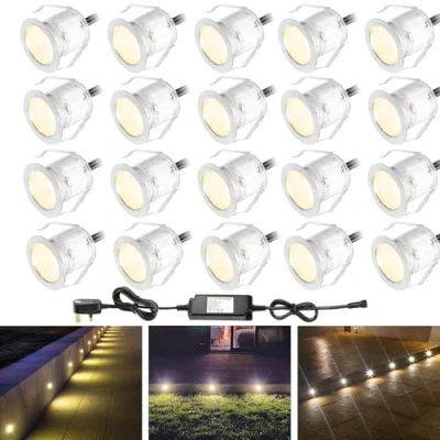 INDARUN Warm White Led Decking Lights Waterproof IP67 0.6W Ø30MM Lighting for Terrace/Patio/Path/Wall/Garden/Decoration, 20 Packs
