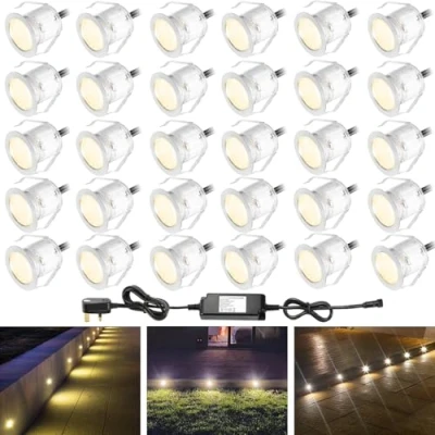 INDARUN Warm White Led Decking Lights Waterproof IP67 0.6W Ø30MM Lighting for Terrace/Patio/Path/Wall/Garden/Decoration, 30 Packs