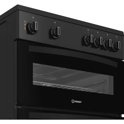 60cm Electric Ceramic Cooker: Designed for modern kitchens, the sleek black finish and freestanding design fit seamlessly into any layout. Rapid-Heat Ceramic Hob: Four smooth ceramic zones offer fast heating, precise cooking control, and an easy-to-clean glass surface. Spacious Double Oven: Ideal for family cooking, the main fan oven provides even heat distribution, while the upper oven adds extra capacity. Integrated Electric Grill: Perfect for grilling, toasting, and browning dishes, giving you greater versatility at mealtimes. Fan-Assisted Main Oven: Ensures consistent, evenly cooked results on every shelf—great for baking, roasting, and batch cooking. Easy-Clean Enamel: Low-maintenance oven interiors resist grease build-up, allowing simple wipe-down cleaning. User-Friendly Controls: Large dials and a clear oven window make operation effortless, even for beginners. Reliable Everyday Performance: Built by Indesit, a trusted name in home appliances, offering efficiency, durability, and convenience for busy households.