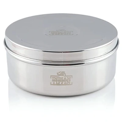 Classical Masala Dabba (Spice Box) as used in India for generations Designed and exclusive to Indian Tiffin, developed after years of experience selling Masala Dabbas Stainless Steel Dabba with a stainless steel lid, when fully assembled the Dabba has a diameter of 20cm and a height of 11cm. The 7 inner pots have clear lids and are 6.6cm in diameter and 6.6cm tall. They can hold around 200ml or 6.7 fl.oz and weigh 40g. The Dabba comes in a nice and bold gift box, which makes a perfect gift for any occasion The Masala Dabba also comes with free spice labels that you can apply to the tins to help you label your spices Made of food grade stainless steel (grade 304), meets EU LFGB & US FDA food contact safety standards, Weight: 0.0881849048 Pounds, Manufacturer: Indian Tiffin