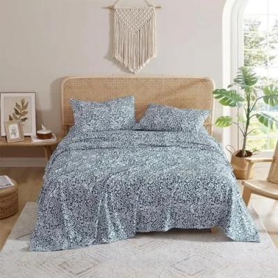 4-PIECE QUEEN SIZE SHEET SET INCLUDES: (1) Flat Sheet (90 x 96 inches), (1) Fitted Sheet (60 x 80 inches + 12 inches), (2) Standard Size Pillowcases (20 x 30 inches) PRINTED BOHO SHEETS: Intricately detailed damask designs in navy blue and white bring boho-chic style to your room décor. SOFT ALL-SEASON COMFORT: Crafted from 100% polyester, these breathable sheets are cozy yet lightweight—ideal for hot sleepers and comfortable year-round. They get softer with every wash for lasting comfort and durability. WRINKLE & PILL-RESISTANT: These durable sheets come out of the dryer smooth and tidy—no ironing needed—and are designed to resist pilling and fuzz for a polished finish. FADE-RESISTANT COLOR: The vibrant design stays fresh and bright wash after wash, thanks to fade-resistant fabric. SECURE FITTED SHEET: The fitted sheet features strong elastic and a 12-inch pocket depth to stay snugly in place on standard mattresses. EASY CARE SHEETS: Machine washable and dryer safe. Wash in cold water. CONVENIENT STORAGE BAG: Fold and store the bed sheets in the matching fabric bag when not in use. COMPLETE THE LOOK: Coordinates with Indigo Ink boho bedding, decorative pillows, curtains, and washable area rugs SATISFACTION GUARANTEED: We believe you'll love our products as much as we do and offer easy returns through Amazon.