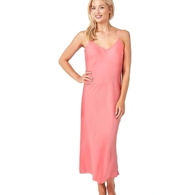 Indigo Sky Samsara Long Satin Chemise Nightdress, Coral Pink, 16 18